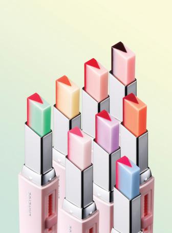 雙色果V棒全線8色同步上市,輕松駕馭各種造型。每一款色號都擁有甜蜜的名字,#3西柚薄荷和#8號櫻桃牛奶,更是由蘭芝代言人李圣經親自參與研發及選色,分別帶來充滿青春氣息的元氣西柚妝和活力櫻桃妝。